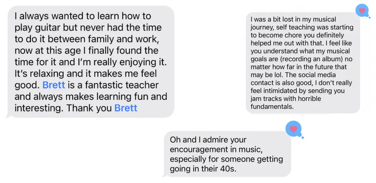 Brett now dedicates his life to helping students understand their unique learning styles, tackle challenges and build self confidence through the amazing experience of learning music.